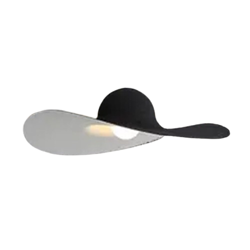 Inspired by the iconic shape of a stylish hat, this unique light features a curved, fabric shade that adds a playful and feminine touch. The soft, white light from the interior illuminates the room with a warm and inviting glow, creating a cozy atmosphere.