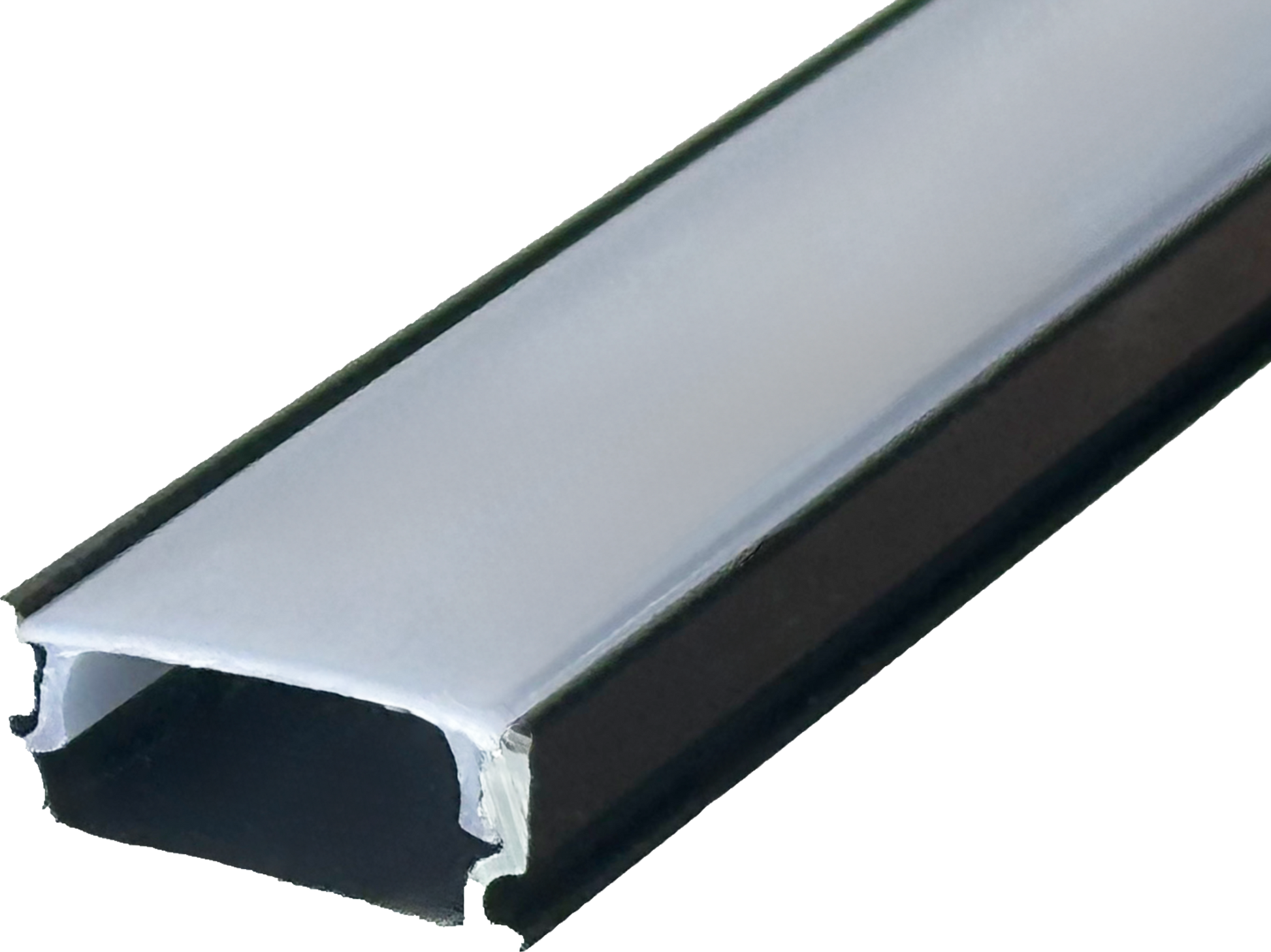 Aura Aluminum Black Profile 17x07mm Surface Mounted with Milky Cover