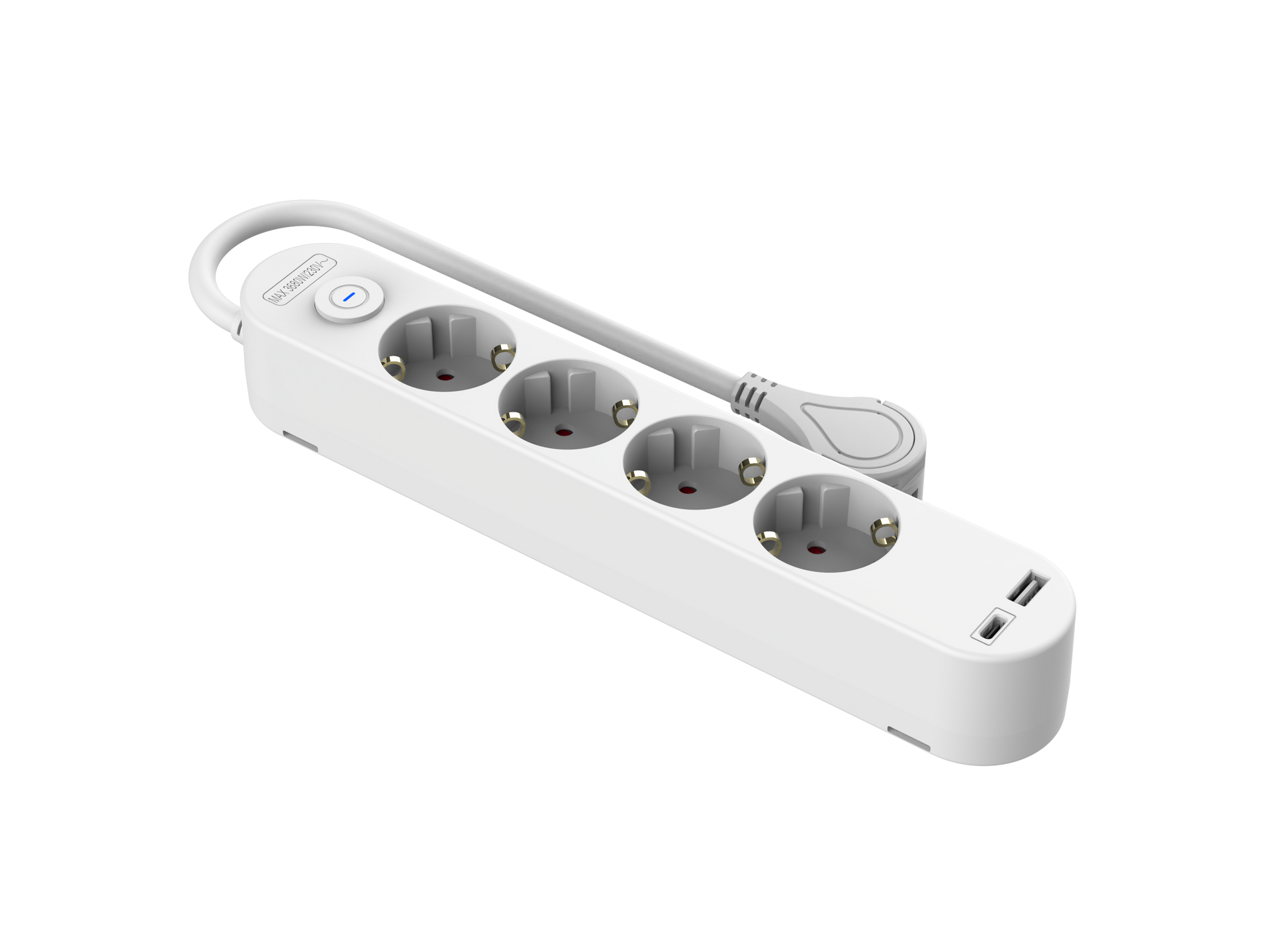 The V.E.M. 4-way multiple socket combines reliable power distribution with convenient USB charging. Made from durable modified PP material, it ensures strength and heat resistance, while the button switch provides simple ON/OFF control. With a 3-meter H05VV-F 3G1.5mm² cable, it offers flexibility for home, office, or workshop use.